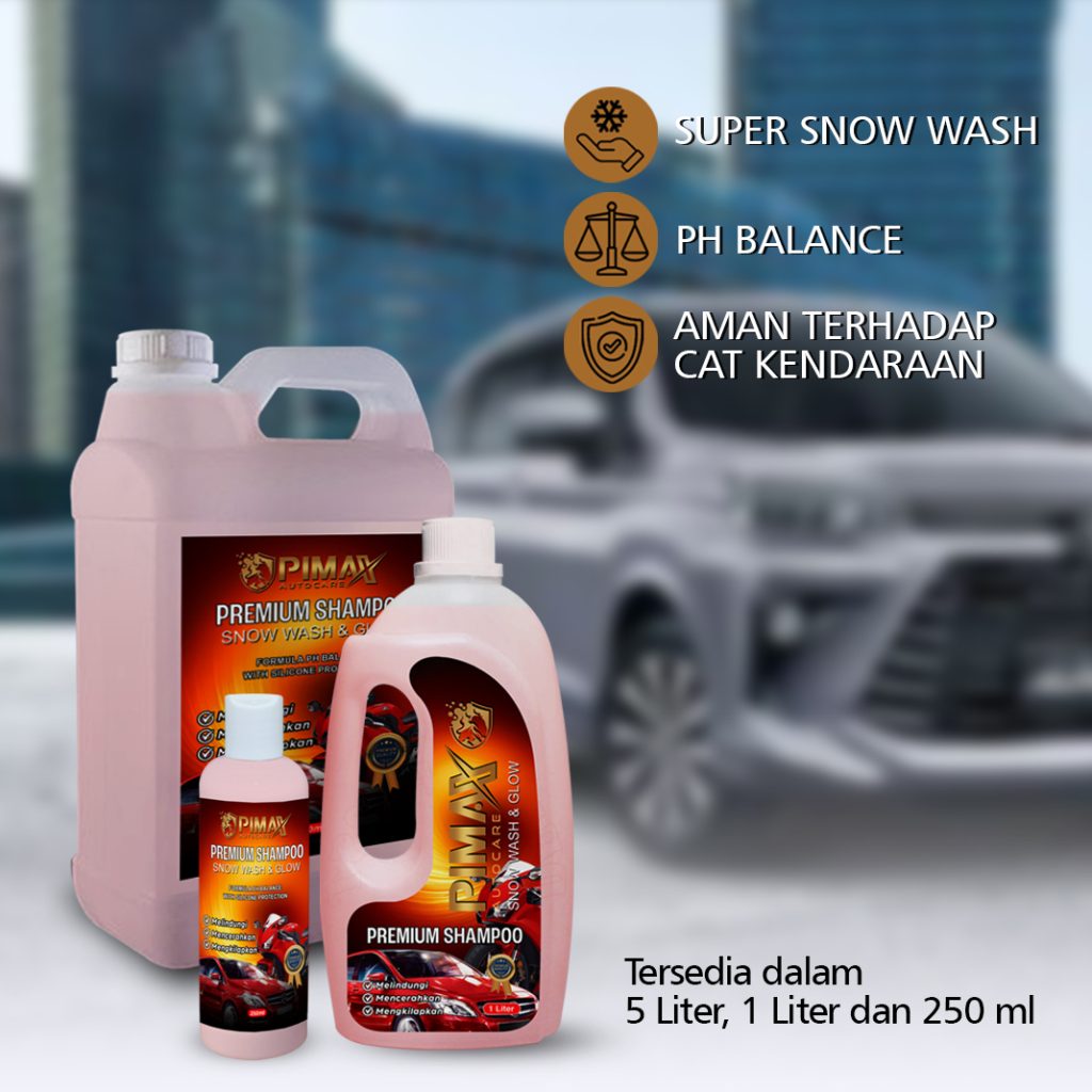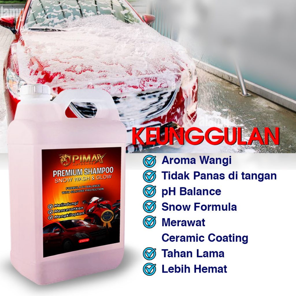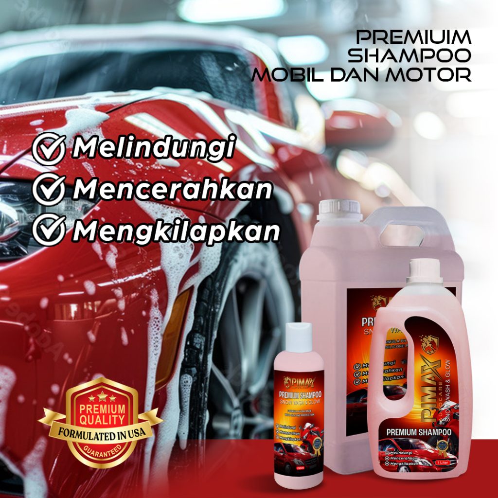 PIMAX Shampo mobil dan motor untuk membersihkan body dari kotoran ringan maupun membandel seperti debu jalanan dan lumpur. Mencuci sekaligus Mengkilapkan Kaca dan Body kendaraan.Aromanya jelas Wangi dan segar. Harga murah dan Berkualitas menghasilkan Busa dan Foam yang cukup tinggi serta mengandung wax sehingga kendaraan setelah dicuci terlihat lebih KINCLONG dan Cerah.