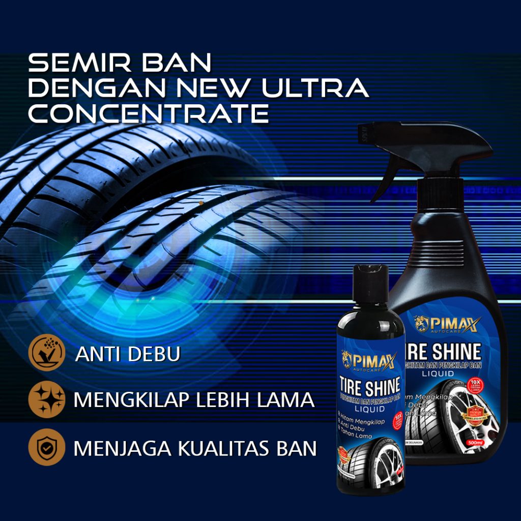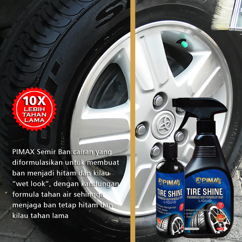 PIMAX Semir Ban cairan yang diformulasikan untuk membuat ban menjadi hitam dan kilau “wet look”, dengan kandungan formula tahan air sehingga menjaga ban tetap hitam dan kilau tahan lama.