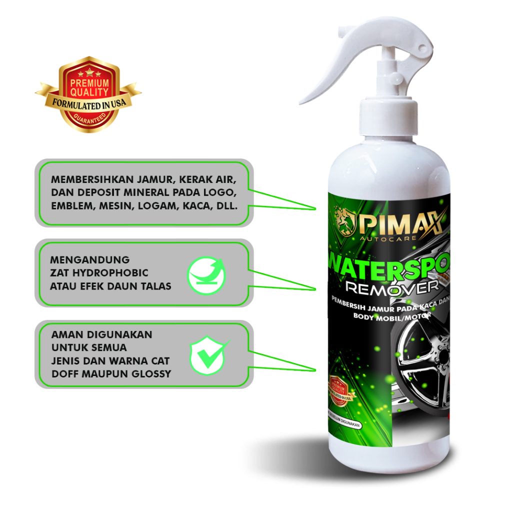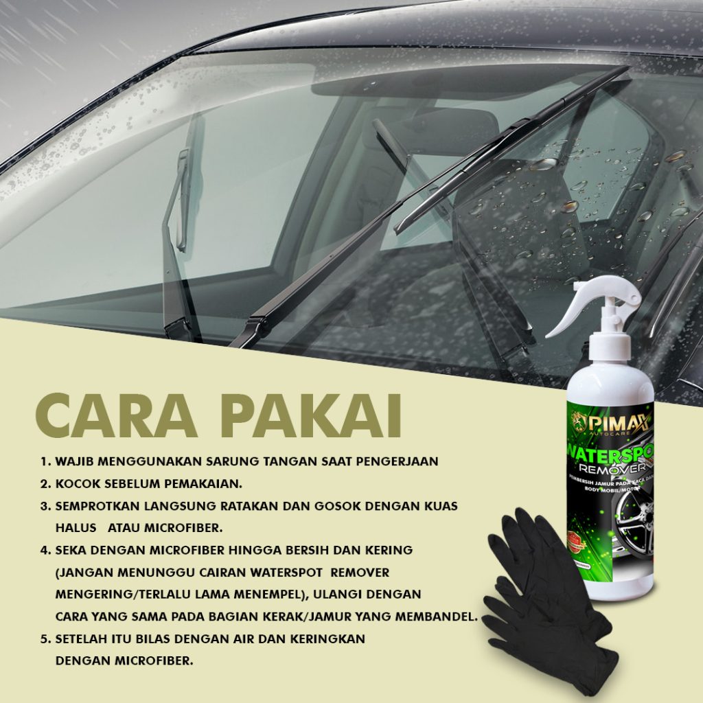 WATERSPOT REMOVER dapat digunakan PEMBERSIH JAMUR KACA, BODY, EMBLEM dan dapat MENCEGAH JAMUR, PIMAX WATERSPOT REMOVER TIDAK MERUSAK KARET KACA.